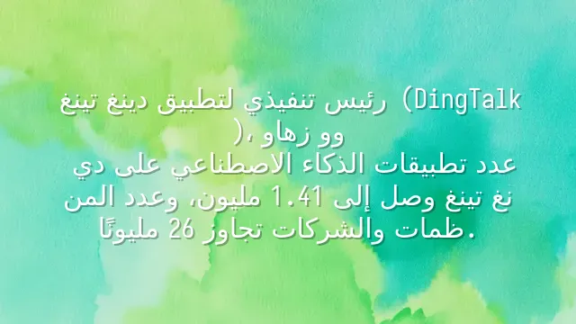 ويصادف هذا العام الذكرى السنوية العاشرة لتطبيق دينغتانغ، وقد أعلن وو تشاو (Wu Zhao) الرئيس التنفيذي لدينغتانغ: حتى 22 أغسطس 2025، تجاوز عدد المنظمات المؤسسية على منصة دينغتانغ 26 مليون منظمة، منها أكثر من 190 ألف منظمة مشتركة مدفوعة الاشتراك، كما تستخدم 79% من الشركات الخاضعة للإدراج في بورصة الأسهم A البالغ عددها 5191 شركة تطبيق دينغتانغ. وفي الوقت نفسه، وصل عدد تطبيقات الذكاء الاصطناعي على منصة دينغتانغ إلى 1.41 مليون تطبيق.