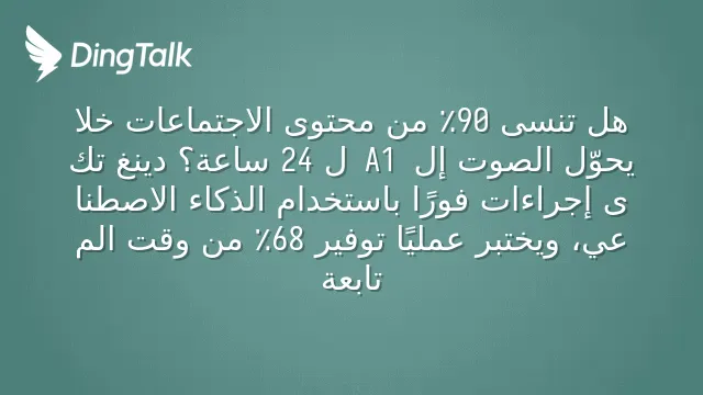 تقضي 3 ساعات في اجتماع، ثم تقضي ساعتين أخريين في تنظيم الملاحظات؟ هذا ليس فقط إهدارًا للوقت، بل خطرًا حقيقيًا على فقدان المعرفة — فبحسب الدراسات، يُنسى أو يُساء فهم 90٪ من قرارات الاجتماعات خلال 48 ساعة. جاء دينغ تك A1 لحل الفجوة بين "الكلام" و"الفعل": فهو لا يسجل الصوت فحسب، بل يحول الصوت مباشرة إلى تعليمات تجارية قابلة للتنفيذ.
