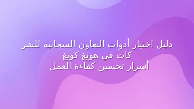 في هذا العصر الرقمي، تسعى الشركات في هونغ كونغ جاهدة لتحسين كفاءة العمل. أصبحت أدوات التعاون السحابية الخيار المفضل للعديد من الشركات، ولكن أمام تنوع الخيارات الكبير، كيف يمكن اختيار الأداة الأنسب للشركة؟ ستُقدِّم لكم هذه الم...