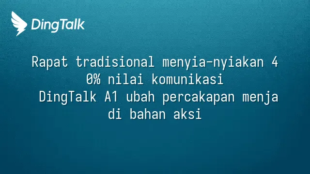 Hingga 68% keputusan lisan lenyap dalam 48 jam karena tidak ada pencatatan (Laporan Perusahaan Asia Pasifik 2024). DingTalk A1 mengakhiri masalah ini, mengubah setiap kata menjadi aset pengetahuan yang bisa dieksekusi, menjadi keunggulan kompetitif sesungguhnya.