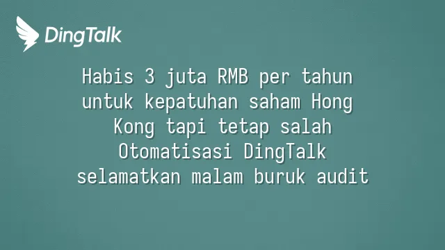 Perusahaan teknologi yang terdaftar di Hong Kong dan menerapkan suite kepatuhan DingTalk mencapai ROI 3,8 kali dalam 12 bulan. Menghemat 210 jam kerja manual setiap bulan untuk verifikasi, jumlah temuan audit tahunan turun 73%, secara langsung mengurangi risiko denda dan biaya konsultan.