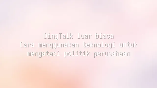 DingTalk luar biasa: Cara menggunakan teknologi untuk mengatasi politik perusahaan