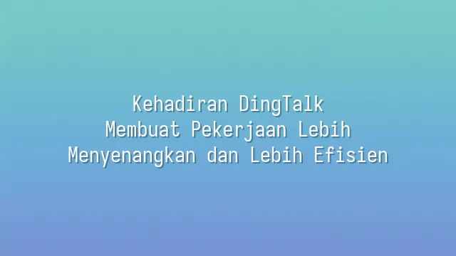 Dalam dunia kerja modern, manajemen waktu dan pencatatan kehadiran yang efisien merupakan faktor penting bagi kesuksesan perusahaan. Sistem kehadiran Dingtalk tidak hanya membantu karyawan mengelola waktu dengan lebih baik, t...
