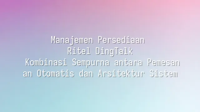 Manajemen Persediaan Ritel DingTalk: Kombinasi Sempurna antara Pemesanan Otomatis dan Arsitektur Sistem