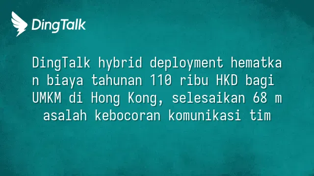 DingTalk hybrid deployment hematkan biaya tahunan 110 ribu HKD bagi UMKM di Hong Kong, selesaikan 68 masalah kebocoran komunikasi tim
