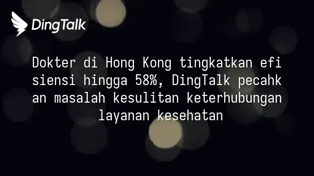 Dokter di Hong Kong tingkatkan efisiensi hingga 58%, DingTalk pecahkan masalah kesulitan keterhubungan layanan kesehatan