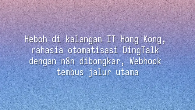 Heboh di kalangan IT Hong Kong, rahasia otomatisasi DingTalk dengan n8n dibongkar, Webhook tembus jalur utama