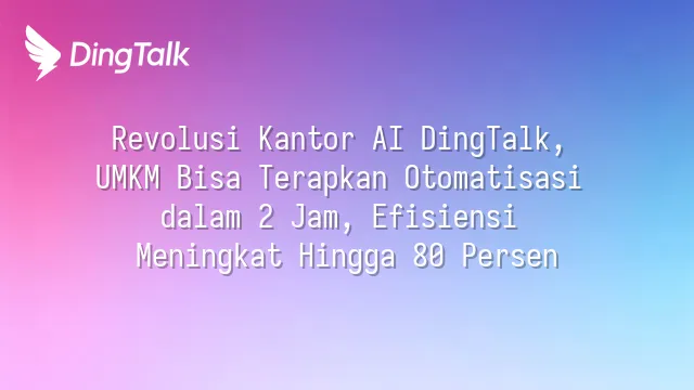 Revolusi Kantor AI DingTalk, UMKM Bisa Terapkan Otomatisasi dalam 2 Jam, Efisiensi Meningkat Hingga 80 Persen