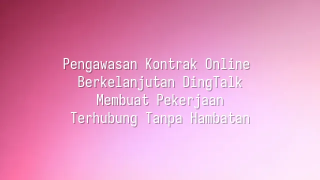 Pengawasan Kontrak Online Berkelanjutan DingTalk: Membuat Pekerjaan Terhubung Tanpa Hambatan