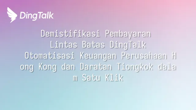 Demistifikasi Pembayaran Lintas Batas DingTalk: Otomatisasi Keuangan Perusahaan Hong Kong dan Daratan Tiongkok dalam Satu Klik