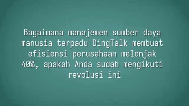 Bagaimana manajemen sumber daya manusia terpadu DingTalk membuat efisiensi perusahaan melonjak 40%, apakah Anda sudah mengikuti revolusi ini?