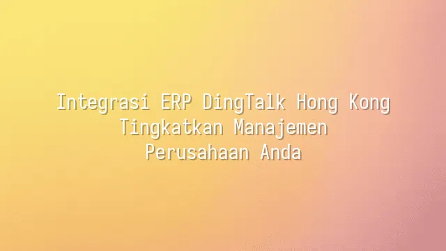 Integrasi ERP DingTalk Hong Kong: Tingkatkan Manajemen Perusahaan Anda