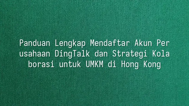 Panduan Lengkap Mendaftar Akun Perusahaan DingTalk dan Strategi Kolaborasi untuk UMKM di Hong Kong
