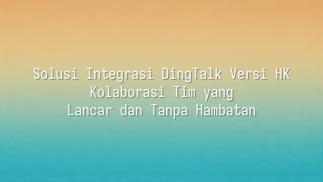 Solusi Integrasi DingTalk Versi HK: Kolaborasi Tim yang Lancar dan Tanpa Hambatan