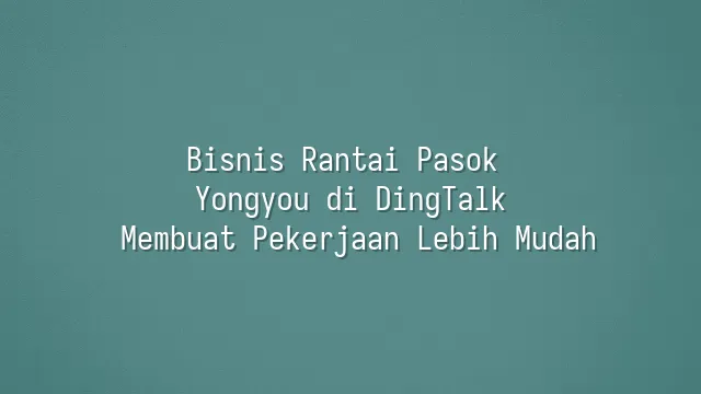 Bisnis Rantai Pasok Yongyou di DingTalk: Membuat Pekerjaan Lebih Mudah
