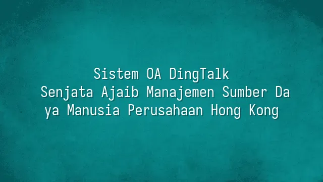 Sistem OA DingTalk: Senjata Ajaib Manajemen Sumber Daya Manusia Perusahaan Hong Kong