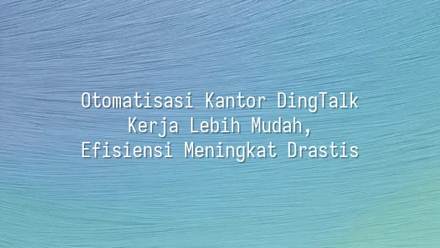 Otomatisasi Kantor DingTalk: Kerja Lebih Mudah, Efisiensi Meningkat Drastis