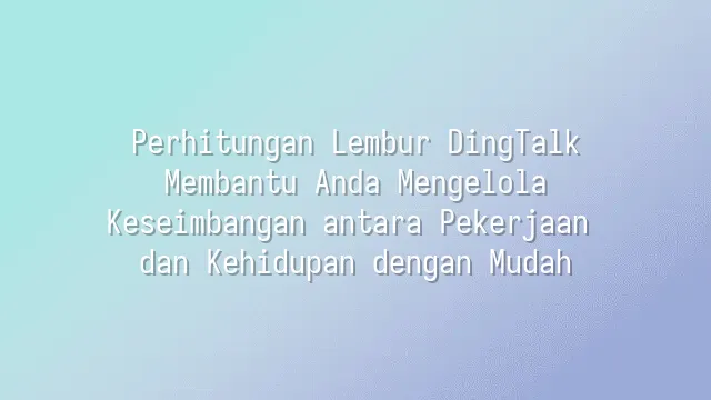 Perhitungan Lembur DingTalk: Membantu Anda Mengelola Keseimbangan antara Pekerjaan dan Kehidupan dengan Mudah