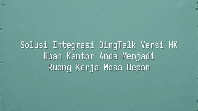 Solusi Integrasi DingTalk Versi HK: Ubah Kantor Anda Menjadi Ruang Kerja Masa Depan
