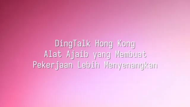 DingTalk Hong Kong: Alat Ajaib yang Membuat Pekerjaan Lebih Menyenangkan