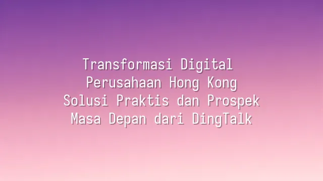 Di era digital yang berubah dengan cepat ini, perusahaan di Hong Kong sedang aktif mencari cara untuk transformasi digital. DingTalk, sebagai alat yang kuat, kini membantu perusahaan-perusahaan ini mencapai tujuan tersebut. A...