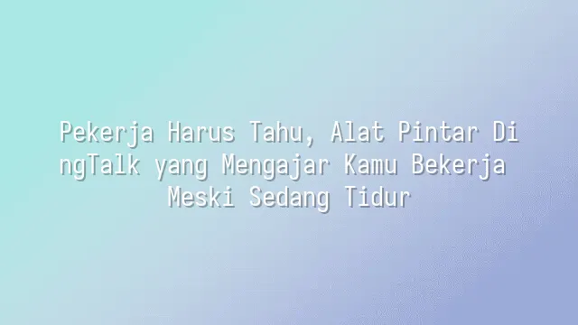 Pekerja Harus Tahu, Alat Pintar DingTalk yang Mengajar Kamu Bekerja Meski Sedang Tidur
