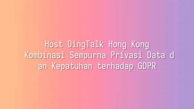Di era digital, privasi data semakin penting. Host Hong Kong DingTalk tidak hanya menyediakan fitur perlindungan data yang kuat, tetapi juga memastikan bisnis Anda memenuhi standar ketat GDPR. Artikel ini akan membahas secara...