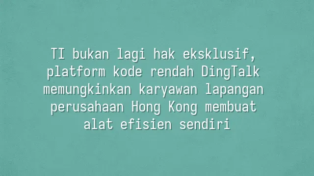 Anda pikir menulis kode adalah milik eksklusif bidang TI? Platform kode-rendah DingTalk sedang memicu revolusi di kantor. Dari perbaikan fasilitas ruang istirahat hingga persetujuan keuangan, perusahaan Hong Kong menyelesaika...
