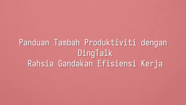 Tip Penggunaan DingTalk Jia Gong Ren Secara Efisien