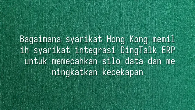 Syarikat mana di Hong Kong yang menyediakan pengintegrasian ERP DingTalk kini menjadi penentu utama sama ada perniagaan boleh melangkah pantas ke arah pejabat pintar. Dulu, ramai syarikat kecil dan sederhana terperangkap dalam lumpur kerja berulang seperti fail Excel, e-mel untuk hantar dokumen, dan input data berulang merentas pelbagai sistem, menyebabkan kos administratif tinggi dan kelewatan membuat keputusan menjadi perkara biasa. Walaupun DingTalk telah menjadi platform komunikasi dan kerjasama harian yang mendalam dalam organisasi, jurang antara DingTalk dengan sistem ERP belakang seperti SAP, Oracle atau perisian perakaunan tempatan tetap menjadi batu penghalang besar dalam transformasi digital. Pengintegrasian sebenar bukan sekadar sambungkan satu garis API, tetapi memastikan data seperti pesanan, stok, sumber manusia, dan kewangan dapat mengalir lancar antara aplikasi hadapan dan sistem utama di bahagian belakang. Justeru itu semakin ramai syarikat Hong Kong mula bertanya secara serius: siapa sebenarnya yang mampu laksanakan ini? Pembekal yang hanya tahu guna templat tanpa faham konteks operasi perniagaan sering menyebabkan aliran kelulusan tersekat, notifikasi lewat, malah menimbulkan risiko pematuhan akibat konfigurasi keizinan yang salah. Hanya pasukan yang memiliki kedalaman teknikal dan pemahaman industri sahaja yang mampu membuka saluran utama ini, mengangkat DingTalk daripada alat komunikasi kepada pusat saraf perniagaan.