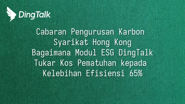 Usahawan kecil dan sederhana tidak perlu bermula dari sifar untuk mencapai pematuhan ESG. Menghadapi tuntutan pendedahan iklim yang semakin ketat, lebih baik gunakan aset sistem sedia ada daripada menghabiskan berbulan-bulan mencari-cari proses inventori karbon—modul ESG DingTalk menyediakan laluan empat peringkat yang jelas: penilaian sistem, pemetaan data, konfigurasi modul hingga pengesahan pihak ketiga, memendekkan masa pemasangan purata kepada kurang daripada 8 minggu. Ini bukan sekadar peningkatan teknologi, tetapi titik pusingan strategik: sebuah kontraktor binaan tempatan menggunakan laluan ini dengan bantuan rakan kongsi tempatan “Persatuan Promosi Teknologi Hijau Hong Kong”, berjaya mengintegrasikan data ERP dan bil tenaga, menyelesaikan inventori karbon pertama dan layak mendapatkan pinjaman hijau, dengan kos pembiayaan berkurang sebanyak 1.2 peratus.