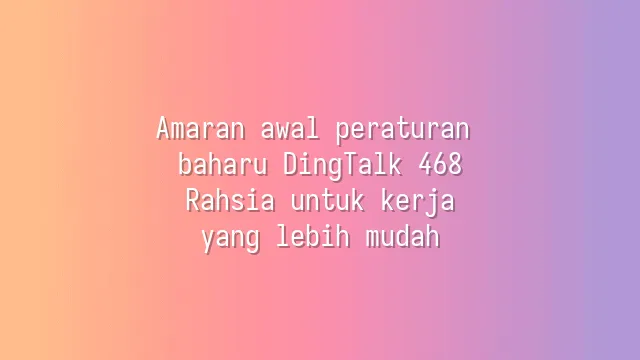 Amaran Peraturan 468 kedengaran seperti kod rahsia, adakah ianya isyarat tersembunyi yang ditinggalkan oleh orang asing untuk DingTalk? Jangan risau, ia sebenarnya tidak misteri langsung, malah sangat praktikal! Ringkasnya, ini adalah mekanisme peringatan pintar yang direka khusus untuk automatasi alur kerja, bertujuan mengatasi masalah umum di tempat kerja seperti "lupa balas e-mel", "terlewat ke mesyuarat", dan "bekerja sehingga lewat malam sehari sebelum tarikh akhir".