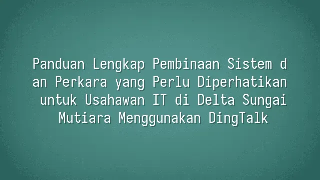 Panduan Lengkap Pembinaan Sistem dan Perkara yang Perlu Diperhatikan untuk Usahawan IT di Delta Sungai Mutiara Menggunakan DingTalk