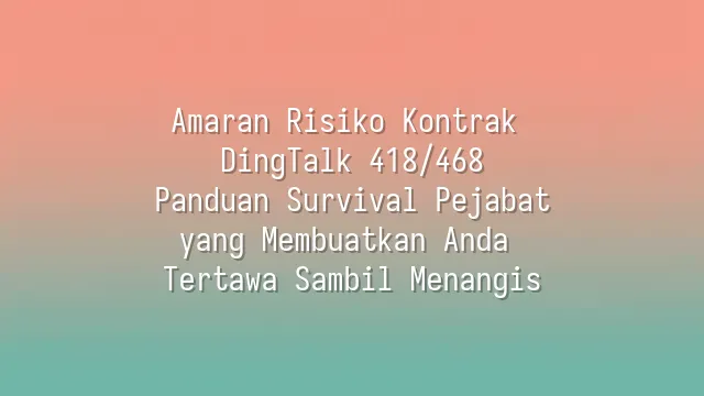 Amaran Risiko Kontrak DingTalk 418/468: Panduan Survival Pejabat yang Membuatkan Anda Tertawa Sambil Menangis