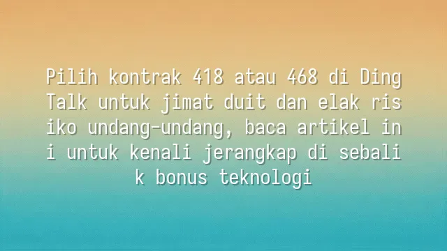 Pilih kontrak 418 atau 468 di DingTalk untuk jimat duit dan elak risiko undang-undang, baca artikel ini untuk kenali jerangkap di sebalik bonus teknologi