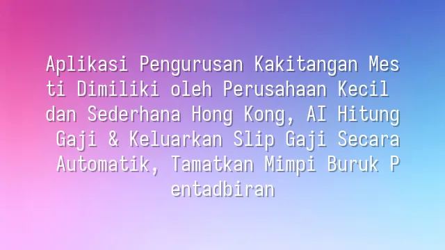 Aplikasi Pengurusan Kakitangan Mesti Dimiliki oleh Perusahaan Kecil dan Sederhana Hong Kong, AI Hitung Gaji & Keluarkan Slip Gaji Secara Automatik, Tamatkan Mimpi Buruk Pentadbiran