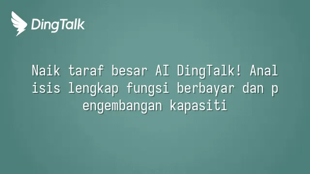 Naik taraf besar AI DingTalk! Analisis lengkap fungsi berbayar dan pengembangan kapasiti