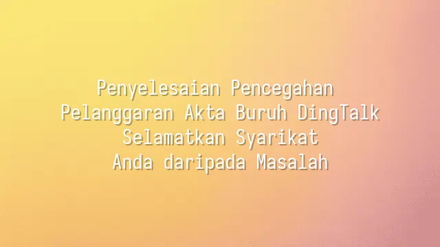 Penyelesaian Pencegahan Pelanggaran Akta Buruh DingTalk: Selamatkan Syarikat Anda daripada Masalah