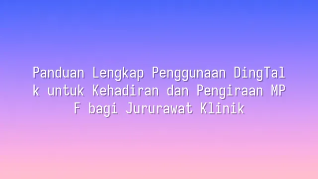 Panduan Lengkap Penggunaan DingTalk untuk Kehadiran dan Pengiraan MPF bagi Jururawat Klinik
