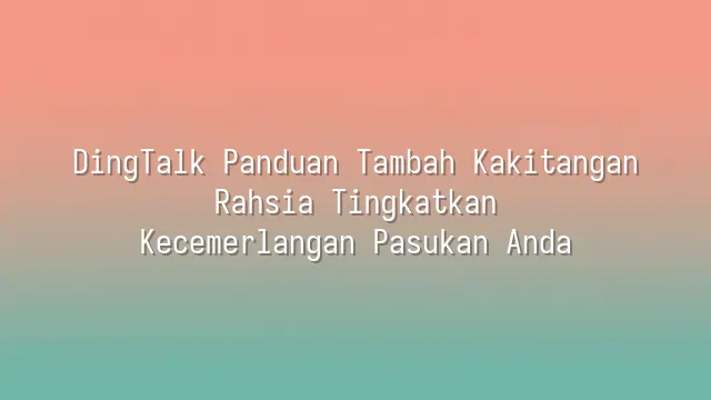 DingTalk Panduan Tambah Kakitangan: Rahsia Tingkatkan Kecemerlangan Pasukan Anda