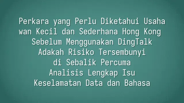 Perkara yang Perlu Diketahui Usahawan Kecil dan Sederhana Hong Kong Sebelum Menggunakan DingTalk: Adakah Risiko Tersembunyi di Sebalik Percuma? Analisis Lengkap Isu Keselamatan Data dan Bahasa