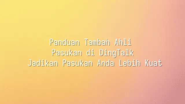 Panduan Tambah Ahli Pasukan di DingTalk: Jadikan Pasukan Anda Lebih Kuat