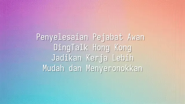 Penyelesaian Pejabat Awan DingTalk Hong Kong: Jadikan Kerja Lebih Mudah dan Menyeronokkan