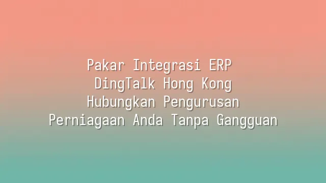 Pakar Integrasi ERP DingTalk Hong Kong: Hubungkan Pengurusan Perniagaan Anda Tanpa Gangguan