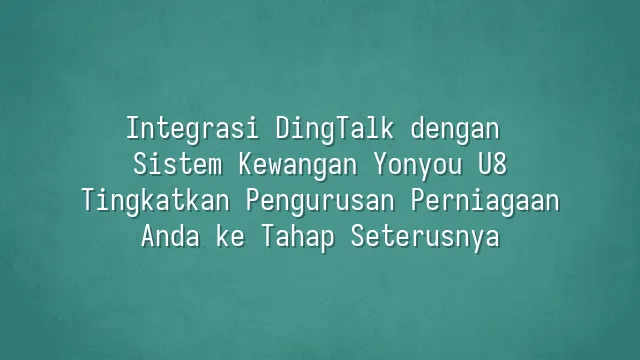 Integrasi DingTalk dengan Sistem Kewangan Yonyou U8: Tingkatkan Pengurusan Perniagaan Anda ke Tahap Seterusnya