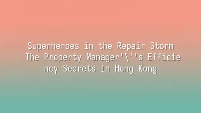Even better is their communication strategy: “Your toilet issue has been upgraded to a ‘yellow alert’—technician en route at full speed!” This single sentence calms frustration and adds drama, turning angry tenants into excited audience members. After all, in Hong Kong, handling repairs isn’t just technical work—it’s a psychological battle and a race against time, all in one.