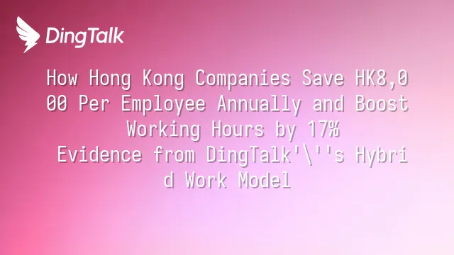 According to the 2024 Asia Enterprise Digital Transformation Benchmark Study, Hong Kong companies fully adopting DingTalk achieved the following within 12 months: saving HK$18,000 per employee annually in office expenses + a 17% increase in productive working hours. For a 500-person company, this translates into a 23% reduction in total cost of ownership (TCO) over three years, freeing up over HK$27 million in cash flow.