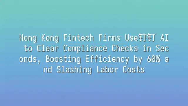 Two representative Hong Kong fintech companies—cross-border payment platform PayHubs and robo-advisory platform WealthNest—have implemented the DingTalk AI compliance review solution over the past 18 months, achieving significant results: manual intervention rates dropped by over 60%, and both passed surprise inspections by the HKMA with instant document retrieval and risk tagging capabilities.