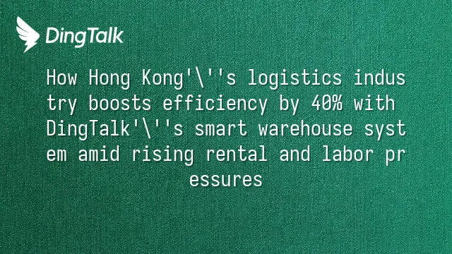 How Can Small and Medium-Sized Logistics Companies in Hong Kong Deploy the DingTalk Smart Warehouse Solution?