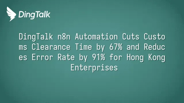 The integration of DingTalk and n8n directly addresses these pain points. DingTalk offers strong user engagement and mobile-ready form capabilities, while n8n provides a no-code automation engine capable of integrating ERP systems, e-invoicing, and Hong Kong’s Trade Single Window. Once a form is submitted, n8n automatically extracts data, validates format, performs compliance checks, and submits to customs systems—achieving full end-to-end automation and reducing customs cycles from 6–8 hours to under 90 minutes.
